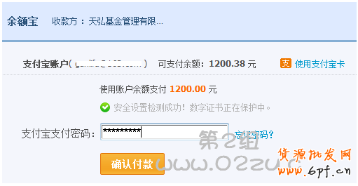 第三步:輸入你的支付寶支付密碼,單擊”確認付款”按鈕即可,如下圖所示。