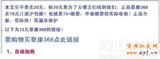 5. 將常規(guī)商品和批發(fā)、缺貨、換購、贈品、定金、訂金等特殊商品放在一個寶貝里出售,且一口價為特殊商品的價格。