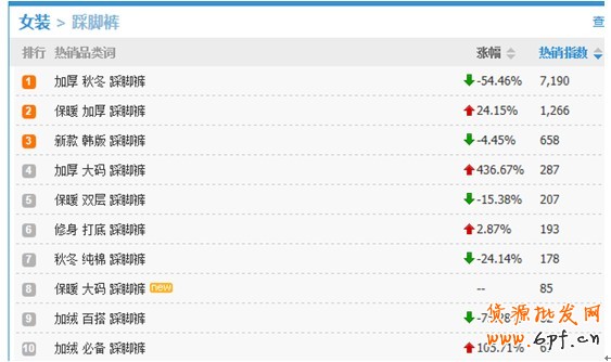 在此為什么以“踩腳褲”來給大家做分析呢?其實是想給一些新手朋友一些思路,在選擇產(chǎn)品的時候,我們應(yīng)該根據(jù)自己的實際情況選擇。如果是新店或是競爭實力較弱的賣家,建議選擇排名比較靠后的細(xì)小類目來做,這就是為什么我拿這個小分類來跟大家說。當(dāng)我們經(jīng)驗丶資金等積累到一定的程度的時候可以根據(jù)自身情況考慮選擇大的類目去做。如果是一個新手賣家,冒冒然的進(jìn)入到女裝的大類目,那無疑是虎口奪食。我們就可以通過數(shù)據(jù)分析,找到那些銷量不錯的細(xì)分類目去做。