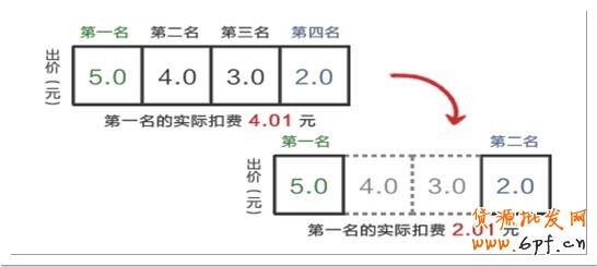 2、同一個競價詞下,不是所有參與出價的寶貝都顯示。例如,“雪紡連衣裙”,第一名出價5元,第二名4元,第三名3元,第四名2元。當買家搜索雪紡連衣裙的時候,第二名和第三名因為創(chuàng)意標題沒有寫“雪紡連衣裙”而導致搜索相關(guān)性低,從而失去了本次展現(xiàn)的機會。這二者的出局,使得原本的第四名提升為第二,從而決定了第一名的出價。最終,第一名受益,他的扣費從原本的4.01降低為2.01。在整個競爭隊列中,由于一部分選手的出局,使得留下來的選手,扣費上普遍降低。