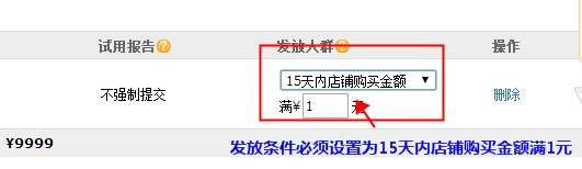 1.發放條件設置為15天內店鋪購買金額滿1元的商品優先抽取。