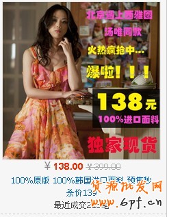 這兩種圖片最大的問題就是展示的文字信息太多,限時價格、七天退換、面料、款式等內(nèi)容都想在一張圖片上展示,消費者看到這樣的圖片時,根本就不知道看哪里,當(dāng)眉毛胡子一把抓的時候,往往的結(jié)果就是什么也得不到。而且如果是還做了其他的定向推廣,像素分別是100*100、160*160*180*180,圖片看起來就會比較的凌亂,消費者根本就不會有點擊的欲望。