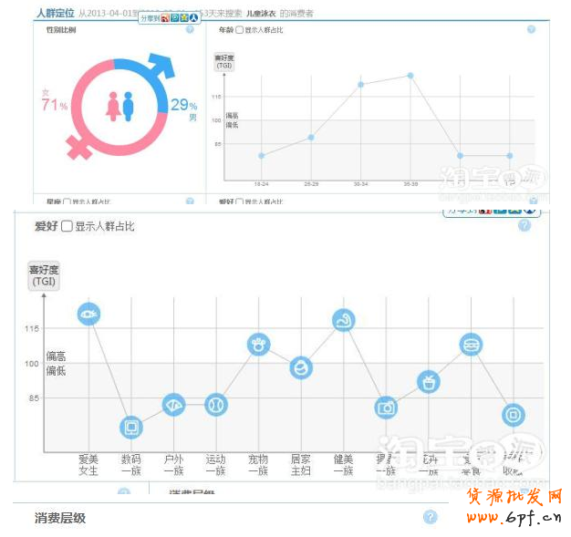 人群定位中,有百分之七十是女性,而且大部分是家庭主婦, 消費階層屬于中級階層,了解這些有利于我們接下來定向設置和定價。價格我們可以設置中階層定價,時間折扣則重點放在晚上。