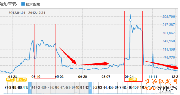 首先我們分析下運動套裝一年四季的流量趨勢: