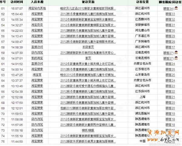 做好這幾步,再到淘寶首頁搜搜您的寶貝吧。還有一個很重要的工具大家一定要用,那就是量子恒道,可以時刻反映我們店鋪的流量及相關數據,如訪客地區,流量來源等,對于我們分析店鋪情況及客戶信息非常有用。小店開始不到兩個月,經過這段時間的努力,流量基本穩定維持在150左右,周末相對低些。
