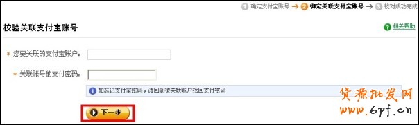 4、輸入您要關(guān)聯(lián)的支付寶賬戶及關(guān)聯(lián)賬戶的支付密碼,點“下一步”;