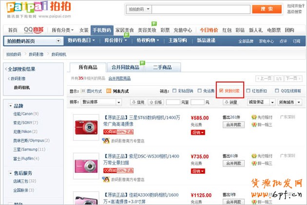 第一步:搜索或瀏覽店鋪,在列表中選擇帶有貨到付款圖標的商品(如下圖所示),點擊商品可進入該商品詳情查看詳細信息;