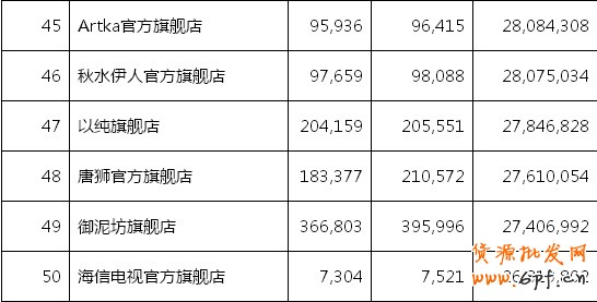 2012年天貓雙十一TOP50排行榜