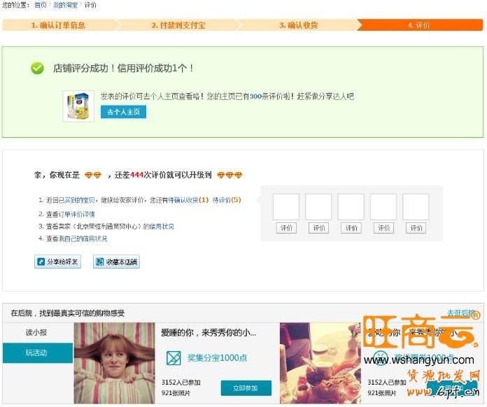 后院和評價完成頁已經實現內容互通,后院有2篇小報或1個活動以上,該后院模塊就會自動顯示。買家評價完成以后,就能看到和這個賣家后院里的最新信息。據了解,評價完成頁目前每天流量近1600萬。