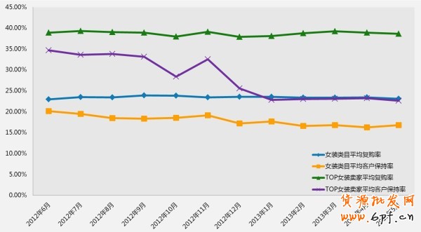 從這數據可以看出,本次案例所提取的女裝店鋪中,它的客戶復購率已經高于女裝類目的平均復購水平。(由于相關數據的取值,以及計算的口徑有所差異,所以,以下數據僅供大家參考):
