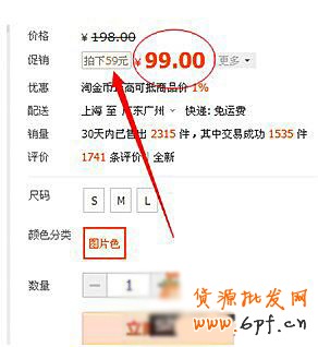 大家從圖上可以看出,寶貝的促銷價格雖然很高,但是促銷標簽里面寫的“拍下99”,就能讓消費者清楚的了解到,拍下寶貝能享受的真實價格,以此來提高消費者的購買欲,增加成交量。