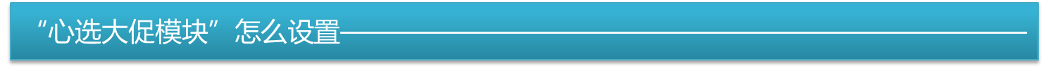 “心選大促模塊”是:當您開啟此大促模塊后,只要您參加了淘寶全網級別的大型促銷活動(如雙12等),系統會直接抓取您參加大促活動的商品信息,在店鋪詳情頁指定區域展現,無須您重復操作。