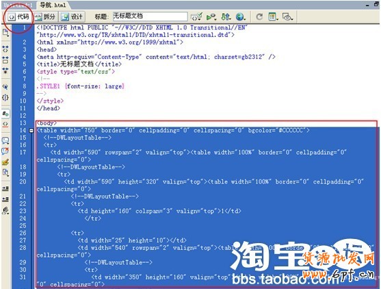 看,上面就有原來我做好的標記吧,現在能明白為什么要做標記了吧,原來我們設計的表格邊框全沒了,當然你也可以在Dreamweaver中設置好邊框就不要做標記了。