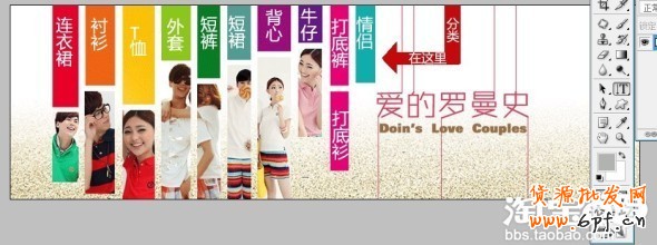偶然看到一個(gè)淘寶商城的寶貝分類做的很漂亮~而且是放在店鋪中間的自定義位置~背景是很漂亮圖片~分類一目了然,而且圖片背景和店鋪的整體裝修風(fēng)格融為一體,特別漂亮~所以就自己動(dòng)手做了個(gè)寶貝分類的圖片!