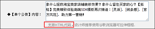 在使用SDK模板裝修店鋪的時候有時候會遇上“支持HTML代碼”的說明,
