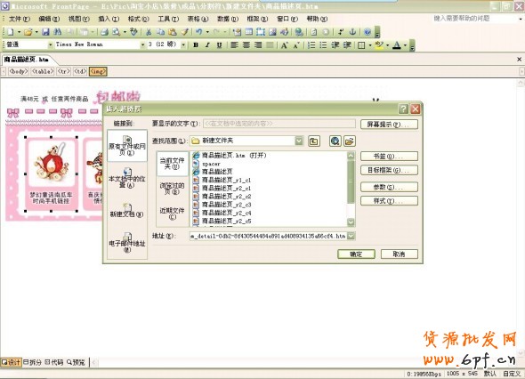 6、給切好的圖片網頁做鏈接。這里有兩個辦法,一個在OFFICE軟件里經常看到的Frontpage了;另一個辦法就是直接將打開的網頁復制黏貼到大家熟悉的淘寶助手里面直接編輯!