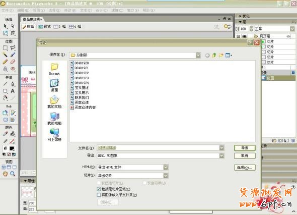 4、導出:點擊文件——選擇導出——然后選擇你要存放的文件夾,最好是新建一個文件夾;選擇導出:HTML和圖像,下面會默認選擇“導出HTML文件”和“導出切片”,取好名字就可以保存。