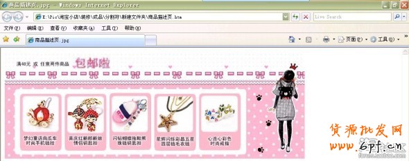 回到剛才存放網頁和切片圖片的文件夾下,打開剛才的,點擊鏈接就可以看到成品!其實操作和淘寶助手基本上是一樣。這樣一個帶圖片鏈接的網頁就做好啦!