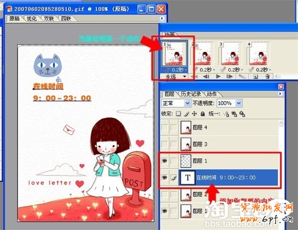 那么只要我們按順序修改每個圖層要顯示的內(nèi)容,就可以做出自己想要的動畫了。