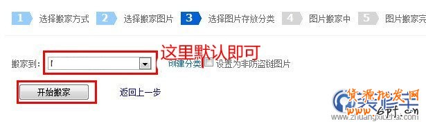 - 建立存放圖片的分類后,點(diǎn)擊開始搬家。