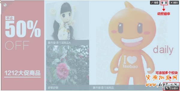 6、雙12促銷寶貝模塊,可編輯可刪除也可以調整排序
