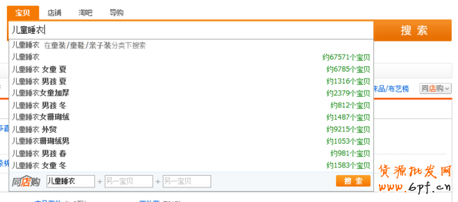 下面是選詞過程,首先我們打開淘寶的首頁,輸入兒童睡衣,搜索框會下拉出很多推薦的詞,把這些詞整理出來