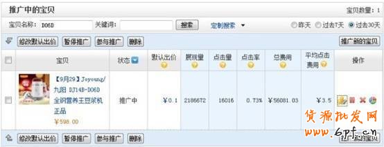 最后來看一下我們店鋪D06D豆漿機單品近一個月直通車的數據:
