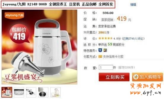 第二、根據標題屬性,到淘寶網首頁輸入“九陽豆漿機”,看是否有你需要的關鍵詞?