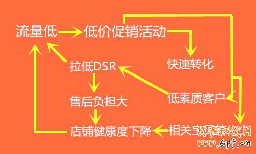 一方面是走低價促銷的成本不僅大,回報低,而且還會嚴重拉低你的客單價的,只要熟悉淘寶規則的賣家都知道,客單價低并不是一件好事來的。另一方面是通過這樣的低價促銷很容易引來的是低素質的買家,很可能導致你店鋪的DSR動態評分跌得更猛。
