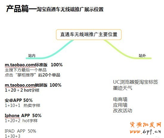 無線直通車是2013年9月底最新上線的無線推廣產品,直通車無線端推廣包含站內和站外,移動設備淘寶站內,其范圍包括手機淘寶網標準版主搜下方最后一個單品,掌柜推薦后的20個單品,淘寶網觸屏版主搜下方最后三個單品,以及淘寶主客戶端等位置。