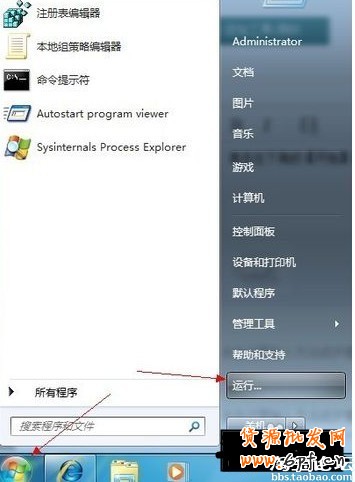 其次,單擊左下角的【開始】按鈕, 單擊右側的【運行】命令。