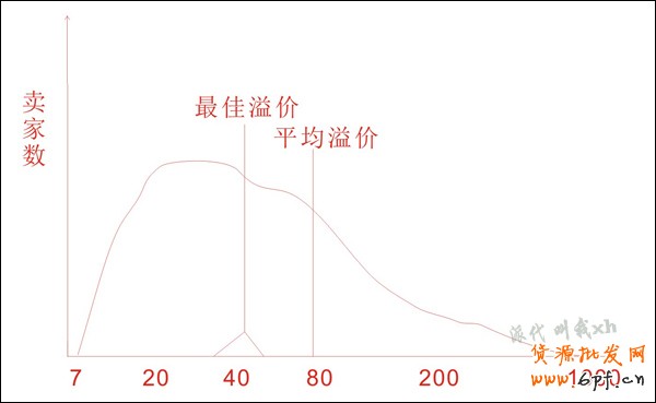 理解了平均溢價,那最佳溢價是什么呢,我這樣來解釋吧:前面已分析了出價在平均溢價以下的賣家遠比高出平均溢價的賣家多,比如出價在78元以下的有100個,預算300元,出價78元以上的只有3個,但他們的預算是10000元,根據之前貼子我們知道,