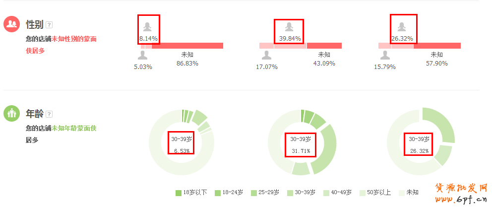 通過店鋪訪客的分析,我們看得出,店鋪成交的一個人群多是未知性別,且年齡多數(shù)是在30-39歲間,通過這些數(shù)據(jù),直通車定向數(shù)據(jù)也可以為寶貝細化定向推廣測試。