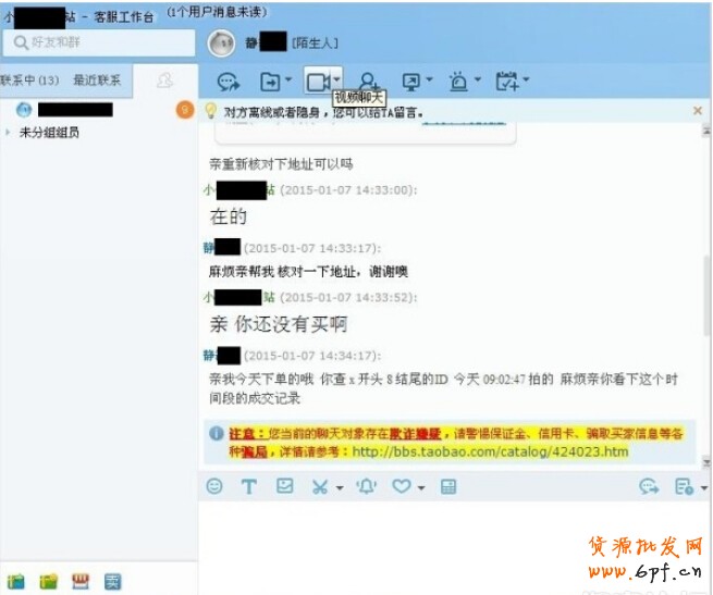 1、騙子利用店鋪成交記錄中的信息,得知買家在店鋪中的購買情況之后,就會聯系客服說自己的買家的朋友,需要修改/核實收貨地址。