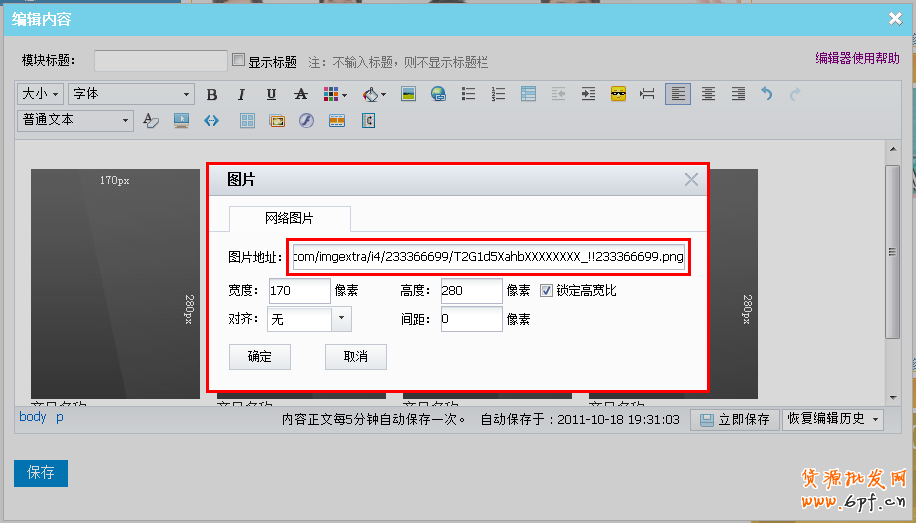 第三步:點擊第一張280*170的圖片模板,便會彈出“圖片網址”編輯器,再點擊“編輯”按鈕。