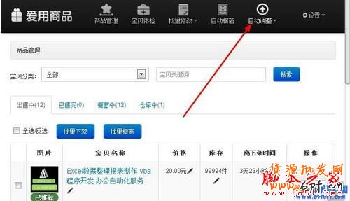 點擊自動調整按鈕,打開自動上下架的對話框(以前這里就叫做自動上下架,下載改名為自動調整。)