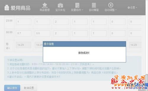 重新調整比重,比如,你超過了101%,那么你需要適當的降低某些時間短段的比重,假如你保存的時候看到【保存成功】,你才能說是成功設置了。
