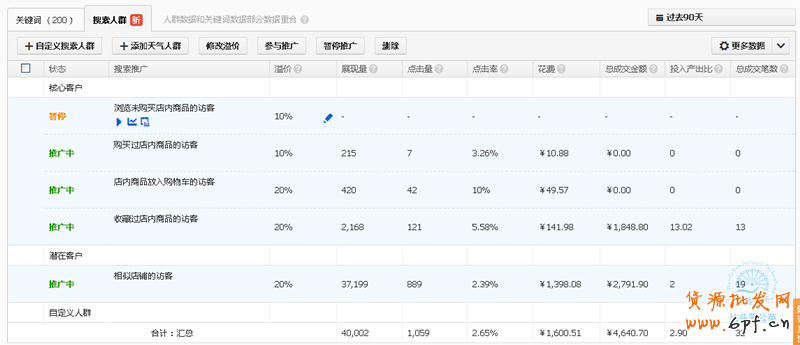 直通車新增加的搜索人群功能,其本質(zhì)在于買家搜索關(guān)鍵詞時候,加入溢價權(quán)重。對適合對應(yīng)人群的買家,可以針對性提高溢價,讓這類人群在更靠前的直通車位置看到。搜索人群是在直通車搜索上對不同的細分人群溢價,主要分為:核心客戶、潛在客戶、自定義人群。其本質(zhì)是通過搜索關(guān)鍵詞,針對不同人群進行溢價,使賣家能在更加精準(zhǔn)的人群中獲取更多的展現(xiàn)。