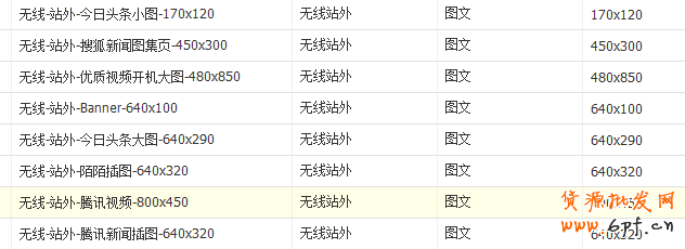 二、站外位置,站外無線&PC各種媒體尺寸流量。