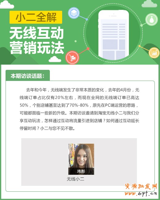 本期訪談我們邀請?zhí)詫殶o線商家小二主要跟大家介紹一下無線端的互動玩法,也就是說如何通過互動將買家吸引到店鋪,讓店鋪獲得更多的流量,而進(jìn)店的流量,通過互動延長停留時間。
