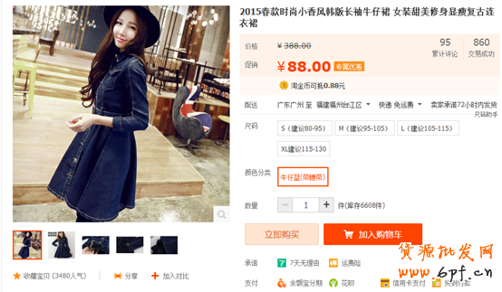 然后在淘寶的搜索框中輸入我購物意向的關(guān)鍵詞“牛仔連衣裙”