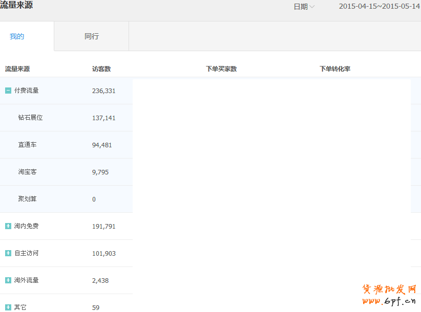 店鋪的付費流量占比較大,付費流量中,鉆展帶來的流量較多。