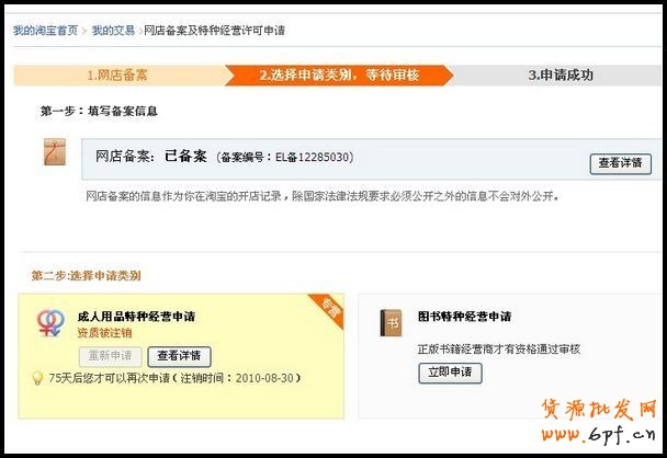 如需退出特種行業經營(音像制品、成人用品、書籍等),可以點此進入“網店備案及特種行業經營申請”頁面,選擇“查看詳情”,點擊“資質注銷”;如在審核中,可隨時撤銷申請。