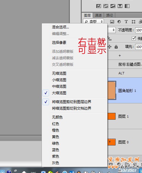 5、對于圖層的縮略圖問題,不少朋友反映能不能讓縮覽圖變小,其實我們右鍵圖層就可以進(jìn)行設(shè)置。