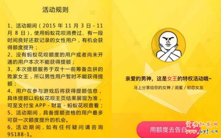本文來源: 剁手黨又一福利,花唄雙十一單獨給女生提額度
