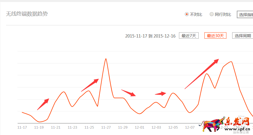 分析:從店鋪接手前的微淘粉絲基礎來看,達到了1w左右,粉絲基礎較好,但從流量角度來看,10.19-11.19期間最高uv也只是達到了100左右,是非常低的,從微淘轉化角度來看,成交雖然幾乎每天都有,但非常偶然,時斷時續??傮w來說微淘方面還是具有一定潛力可以挖掘,同時可以作為店鋪流量引進的另一渠道。