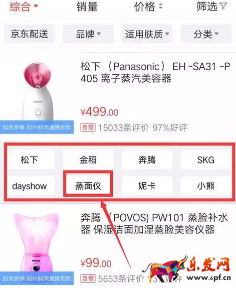 在京東手機端有兩個經常被人忽略的兩個排序規則,那就是“綜合排序穿插關鍵詞”和”寶貝猜你喜歡”那么今天我就把綜合排序穿插關鍵詞先將一下,首先我們先了解下什么是綜合排序關鍵詞穿插,他在哪個位子上。我們在京東APP端口搜索輸入框中搜索“蒸臉器”。