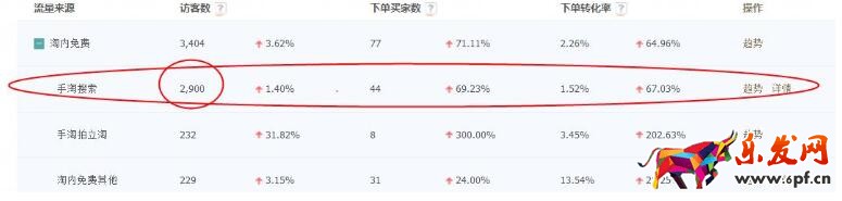 說到直通車帶動搜索渠道流量,我相信很多賣家朋友們已經意識到現在移動端數據占比大的可怕,pc端基本上也是死掉了,當然還是會有個別的類目pc端數據比較好。但是對于絕大部分的賣家來說,無線端就是真真能夠帶來流量和訂單的渠道,當然我們的新品最先起來的流量也大都是來自于無線端。這里就告訴我們,不管是搜索渠道還是直通車渠道,無線端都是我們必爭之地,也是我們小賣家能夠生存下去的地方。而無線端的免費搜索流量就是“手淘搜索”。
