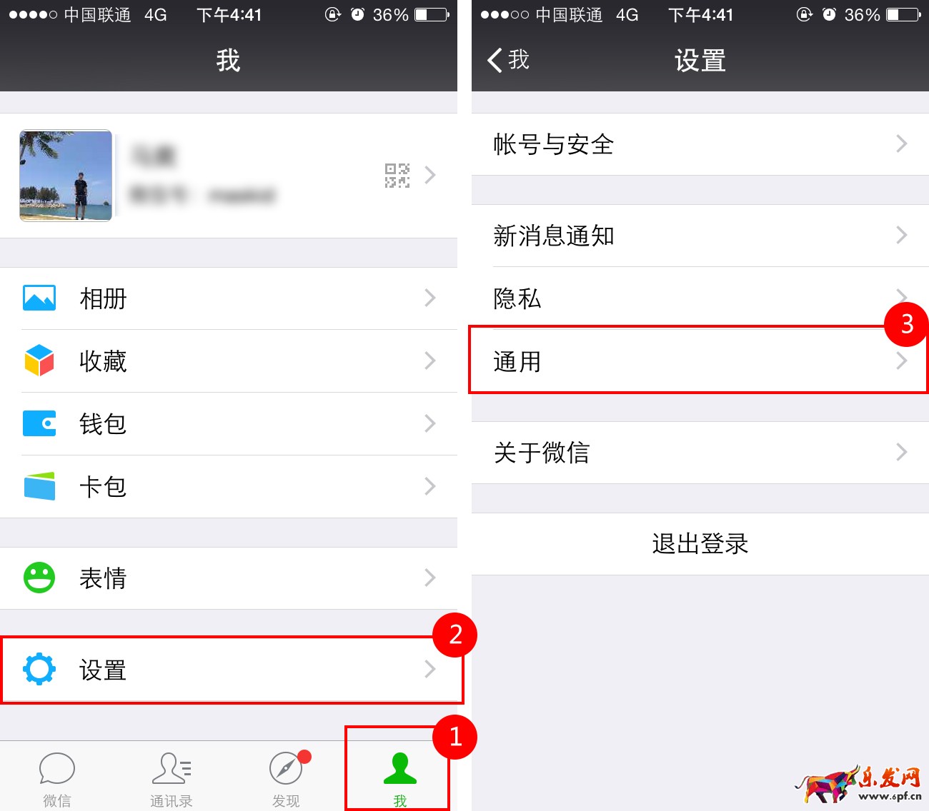 1.在微信中,選擇“我”-“設置”后可以在設置界面中里面找到 “通用”這個按鈕??梢园磮D中標記的順序進行查找。