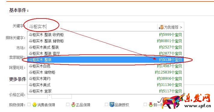 第三步找最佳三級詞,再次搜索斗柜實木,我們可以看到下面有個競爭比較小的三級詞,斗柜實木整裝,只有5138個寶貝。這個詞我們再去搜索里面查找是不是符合我們寶貝的詞。